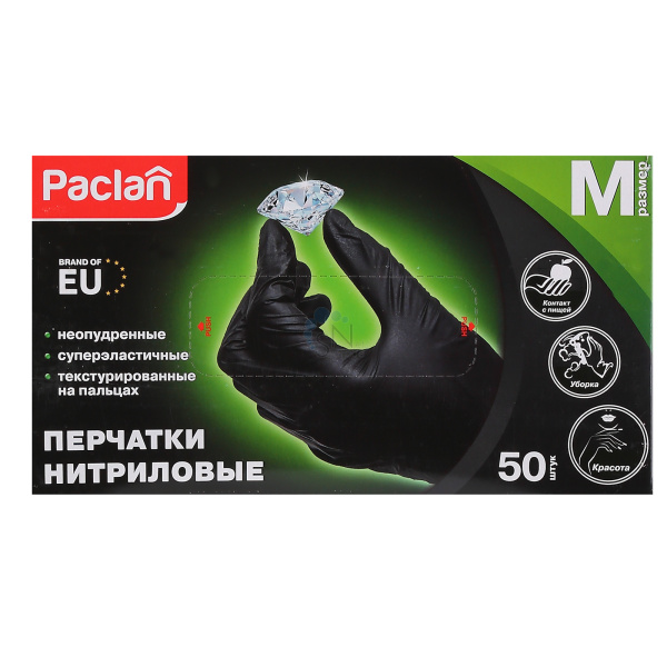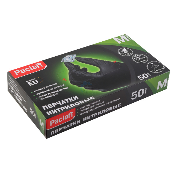 Перчатки нитриловые 50шт ( 25пар) размер M PACLAN black 407780/407783