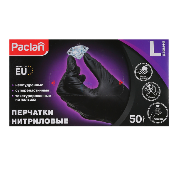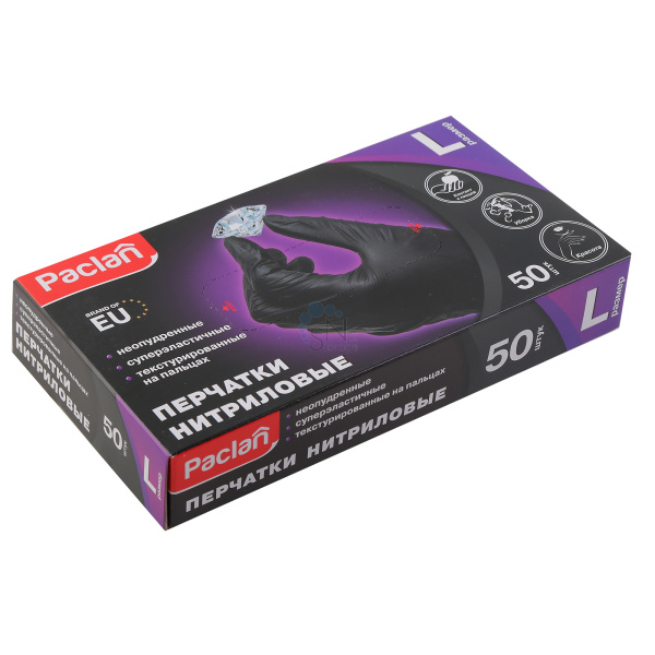 Перчатки нитриловые 50шт (25пар) размер L PACLAN black 407793