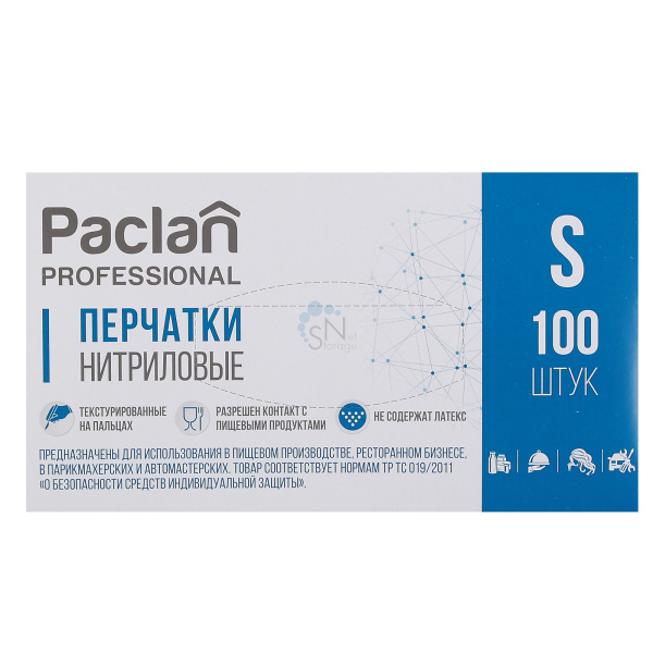 Перчатки нитриловые 100шт (50пар) размер S PACLAN black 407950